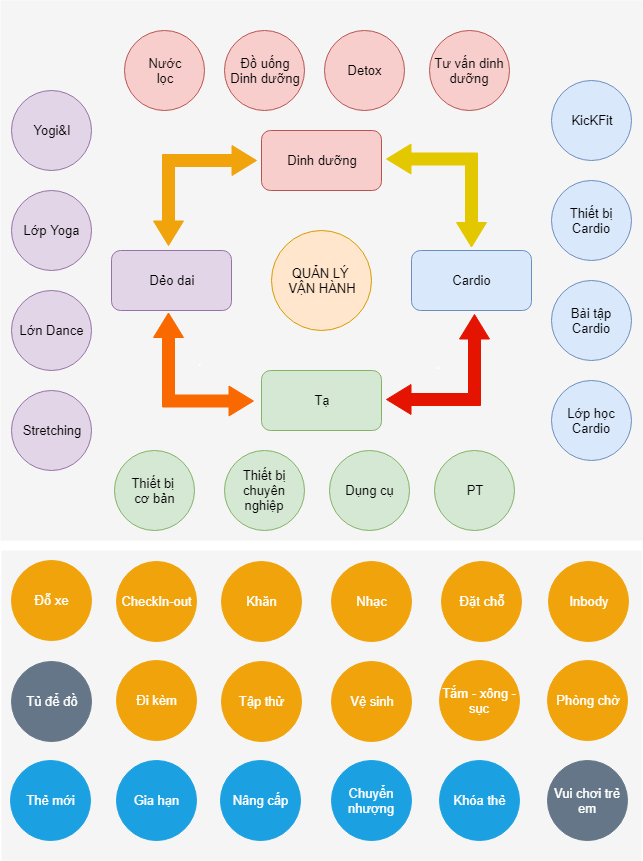 Các dịch vụ của Hội viên Trung tâm thể hình và Yoga S1 được xây dựng theo sơ đồ sau: